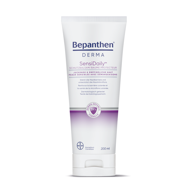 Bepanthen® DERMA SensiDaily Schutzbalsam dient als tägliche Basispflege für juckende und empfindliche Haut.