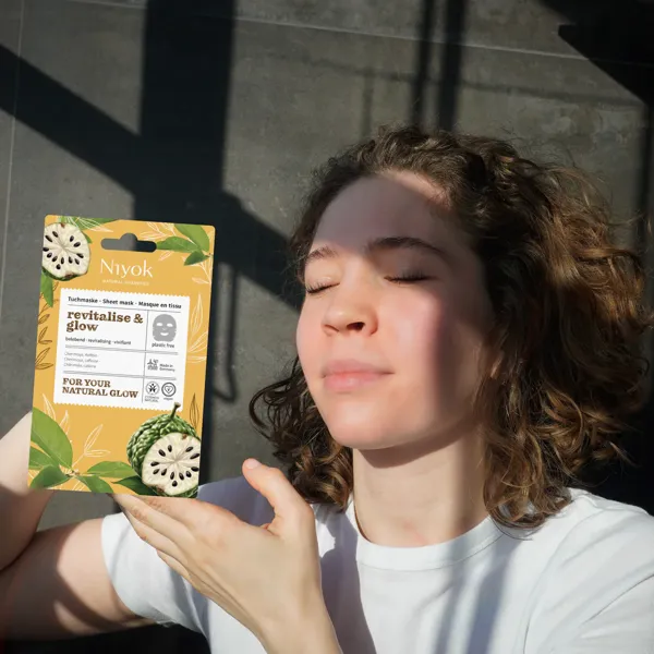 Revitalisierende Tuchmaske mit Koffein & Cherimoya – vegane, kompostierbare Gesichtsmaske für müde Haut, Made in Germany