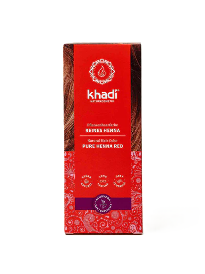 Khadi Pflanzenhaarfarbe Reines Henna tut Deinem Haar und Dir gut. Sie ist komplett natürlich besteht zu 100 % reinem Henna. Deshalb ist sie besonders für Allergiker geeignet. Henna wirkt heilsam, stärkt Deine Kopfhaut und lindert Reizungen. khadi Henna färbt intensiv, aber sanft und deckt auch graue Haare ab.