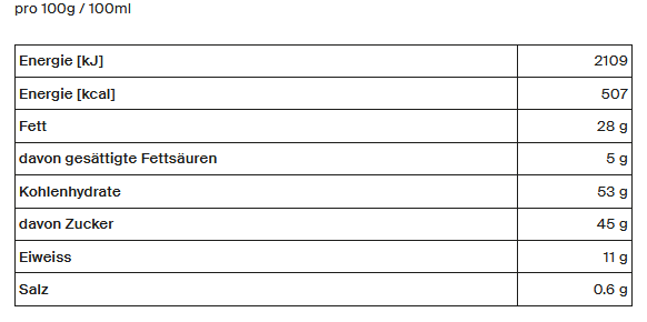 CASHEWKERNE* 60 %, Zucker* 39 %, Zimt*, Kakaopulver*, Vanillepulver*