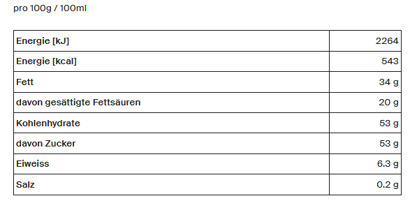 Spuren möglich: MANDELN, HASELNUSS, BAUMNUSS, CASHEW, PEKANNUSS, PARANUSS, PISTAZIEN, MACADAMIANUSS