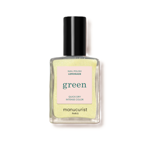 Ein hellgelber Nagellack der Serie Green™ mit Pailletten.