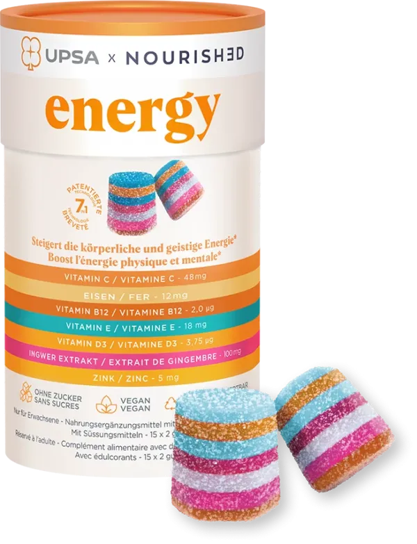Die 7in1 Energy Gummies, reich an Vitaminen, Eisen und Ingwer, fördern Ihre körperliche und mentale Energie und helfen Ihnen, den Alltag kraftvoll zu meistern.