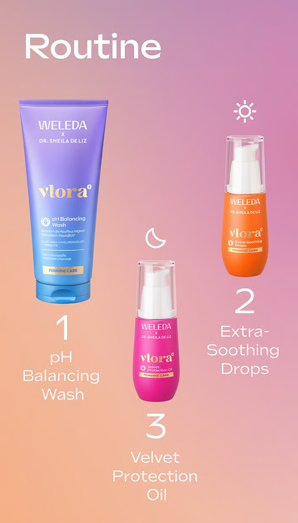 Wenn sich das Herz deiner Weiblichkeit nach einer Extraportion Pflege und Schutz sehnt, verwöhne dich mit dem Vlora+ Velvet Protection Oil. Die Pflegeformel wurde in Zusammenarbeit mit Dr. Sheila de Liz speziell für den sensiblen äusseren Intimbereich entwickelt.