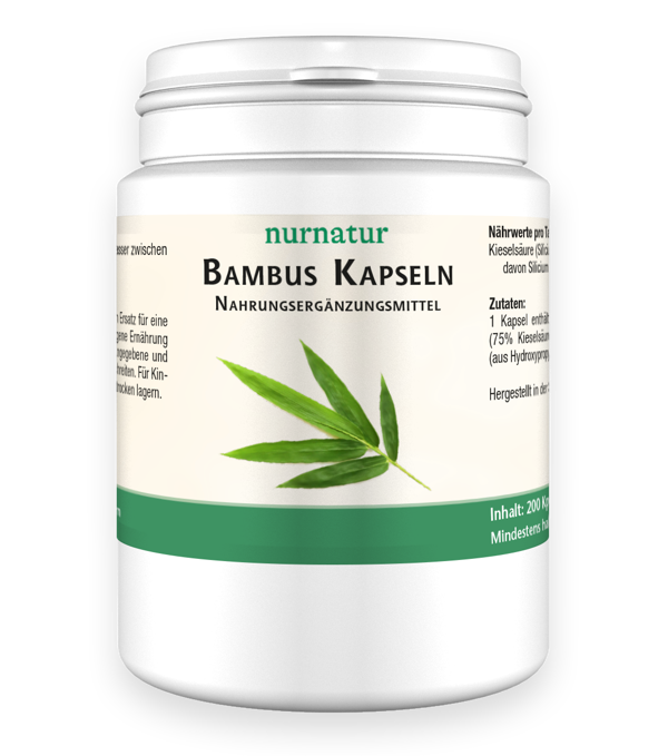 1 Kapsel enthält: 230 mg Bambusextrakt (75% Kieselsäure), vegetabile Kapselhülle (aus Hydroxypropylmethylcellulose).
