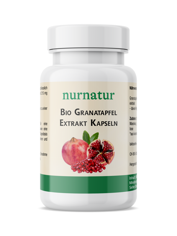 Unsere Bio Granatapfel Extrakt Kapseln enthalten ausschliesslich hochwertigen Pflanzenextrakt aus Granatapfelschalen mit 215 mg Polyphenolen pro Tagesportion.