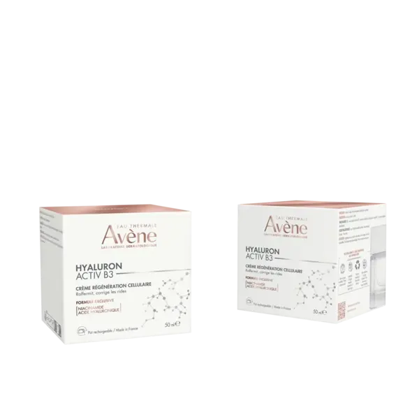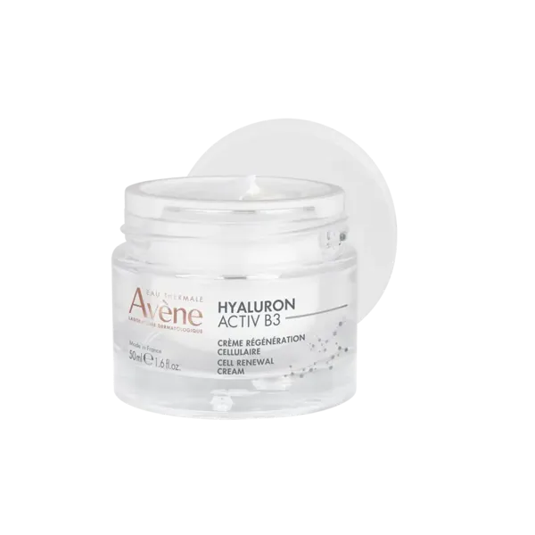 Mit dem Alter beschleunigt sich alles. Alterungszellen verbreiten sich und die Haut funktioniert langsamer. Die dermatologischen Laboratorien von Avène haben die Hyaluron Activ B3 Creme entwickelt, die zu 0,2 % in reiner Hyaluronsäure (hohes und geringes Molekulargewicht) und Niacinamid (6 %) konzentriert ist, um die Ursache der Hautalterung zu bekämpfen und die Lebensdauer der Zellen zu verlängern.* Die Haut wird nach der ersten Anwendung aufgepolstert, geglättet und strahlend. Nach 2 Wochen wird sie regeneriert, straffer und Falten werden gemindert**. Die samtige, zart duftende Textur sorgt für ein angenehmes Hautgefühl. Sie eignet sich auch gut als Make-up-Unterlage. Hyaluron Activ B3 Zellerneuernde Creme ist ein umweltfreundliches Hautpflegeprodukt, das zu 92 % aus Inhaltsstoffen natürlichen Ursprungs besteht und zu 100 % in einem 100 % nachfüllbaren Glasbehälter geliefert wird.
