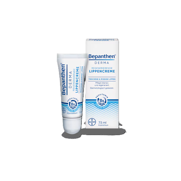 Die Bepanthen® DERMA Regenerierende Lippencreme spendet sofort Feuchtigkeit und pflegt trockene, rissige Lippen.