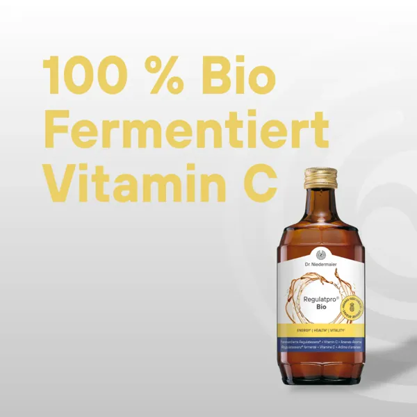 Regulatpro Bio mit Ananas-Geschmack enthält neben einer Vielzahl an sekundären Pflanzenstoffen auch natürliches Vitamin C aus der Acerolakirsche. Es ergänzt die fermentierte Formel ideal und unterstützt einen normalen Energiestoffwechsel1, eine normale Funktion deines Immun- und Nervensystems1, den Schutz deiner Zellen vor oxidativem Stress1 und bei der Verringerung von Müdigkeit und Erschöpfung1.