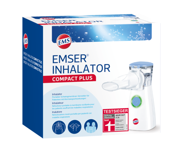 Der Emser® Inhalator Compact Plus ist ein portables Inhalationsgerät, das bei Erkrankungen der Atemwege, wie z. B. Asthma bronchiale, Bronchitis oder COPD zum Einsatz kommt. Akkubetrieben und leise ist das handliche Inhalationsgerät überall anwendbar - zuhause, unterwegs oder im Urlaub.