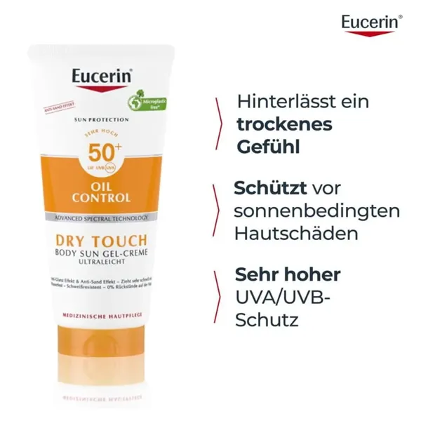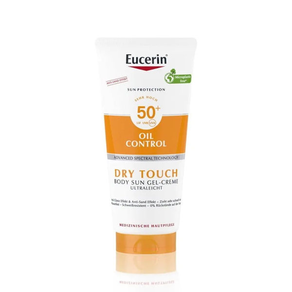 Die beliebte, nicht-fettende Eucerin Sun Body Oil Control Gel-Cream LSF 50+ jetzt auch für den Körper.