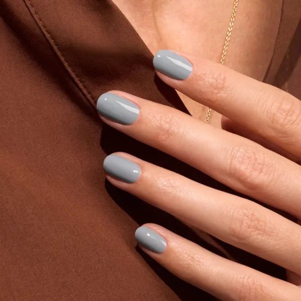 Ein blauer Green™ Nagellack mit grauem Unterton.