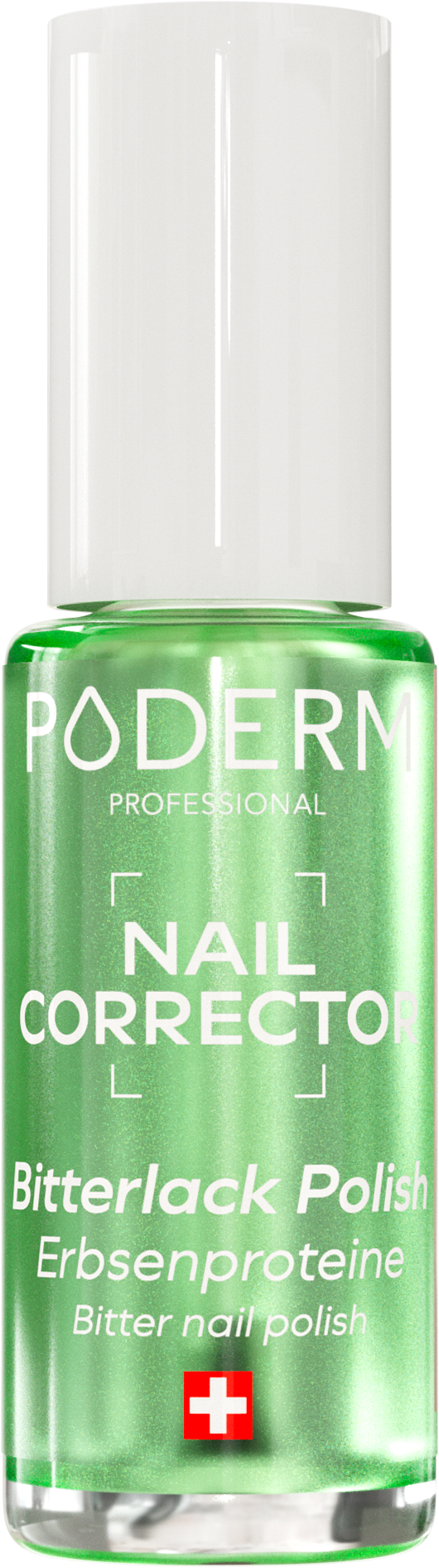 Entdecken Sie den Nagellack Nail Corrector - Bitterlack Polish Erbsenproteine PODERM®, einen pflegenden Nagellack für nägelkauende Nägel, der dabei hilft, die Häufigkeit des Nägelkauens bereits ab der ersten Anwendung zu reduzieren. Sein bitterer Geschmack wirkt abschreckend und hilft, den Drang zum Nägelkauen zu bremsen, um den täglichen Gewohnheitswechsel zu unterstützen.
