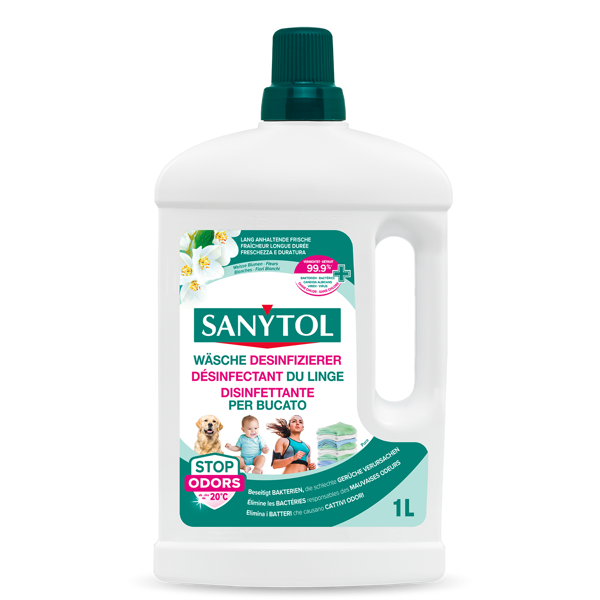 Der Wäschedesinfizierer von Sanytol wurde speziell für eine einwandfreie Wäsche, gereinigt und von schlechten Gerüchen, Mikroben, Bakterien und Viren befreit, entwickelt. Vernichtet bei jeder Temperatur Mikroben, welche beim normalen Waschen nicht entfernt werden. Geeignet für Textilien aus Baumwolle, synthetischen Fasern, Wolle, Seide, usw. Ideal für Sportkleidung, Unterwäsche, Bodenlumpen, Abtrocktücher, Reinigungstücher, Bettwäsche, Hunde- und Katzendecken, etc. Geeignet für alle Textilien.