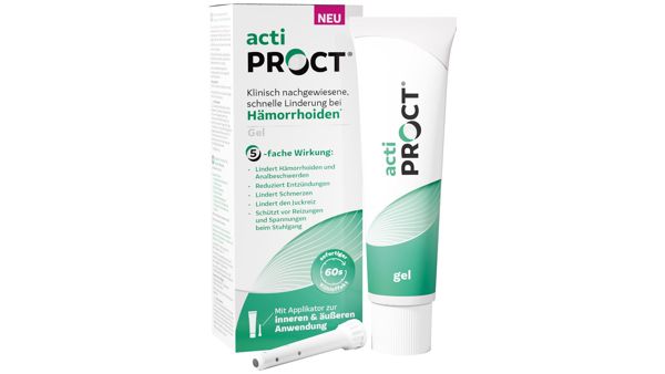 Waschen Sie sich vor und nach der Anwendung die Hände. Geben Sie eine kleine Menge des Actiproct Gels auf den Finger und verteilen Sie es um den Anus herum.