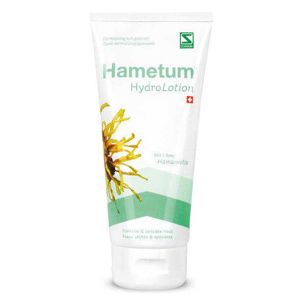 Die Hametum HydroLotion zieht schnell ein und pflegt gereizte, strapazierte und empfindliche Haut. Zusätzlich verhindert die HydroLotion die Entstehung von Spannungsgefühlen und wirkt angenehm lindernd und feuchtigkeitsspendend. Ideale Pflege für beanspruchte Haut nach dem Sonnenbad.