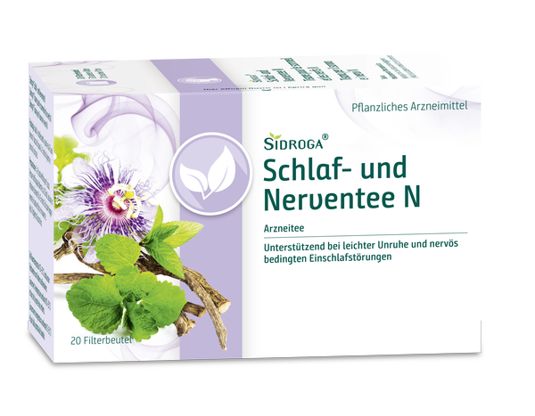 Sidroga Schlaf- und Nerventee N wird unterstützend verwendet bei leichter Unruhe und nervös bedingten Einschlafstörungen.
