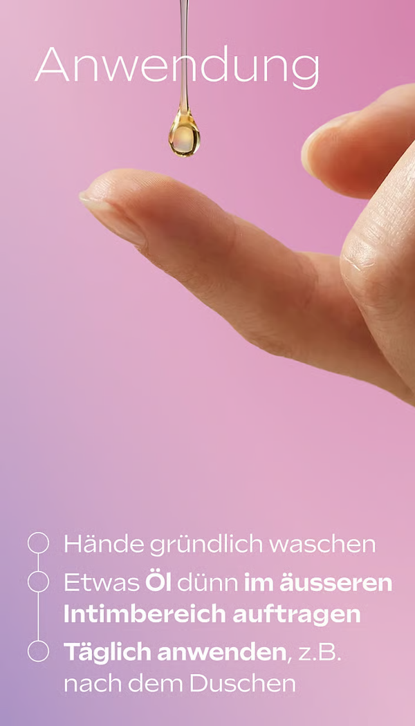Vor der Anwendung des Vlora+ Velvet Protection Oil die Hände gründlich waschen. Anschliessend einige Tropfen dünn auf den äusseren Intimbereich auftragen und spüren, wie sich die Haut angenehm entspannt und gepflegt anfühlt.