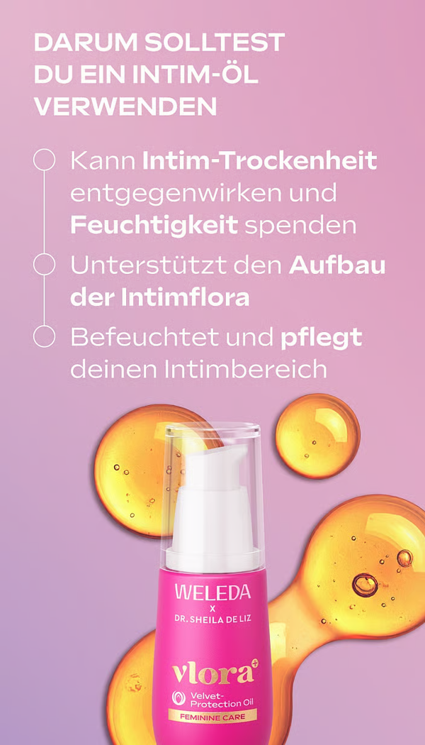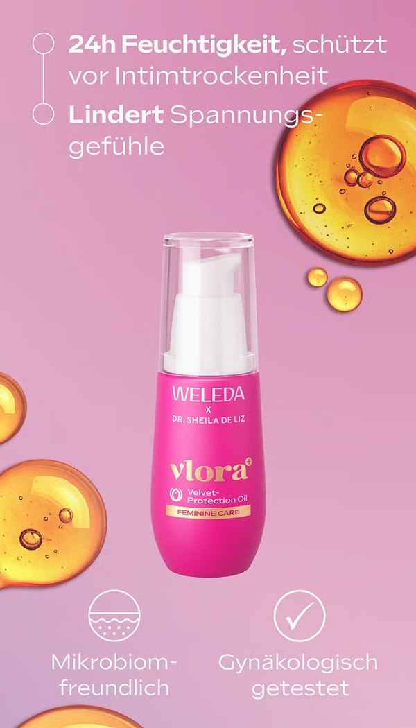 Wenn sich das Herz deiner Weiblichkeit nach einer Extraportion Pflege und Schutz sehnt, verwöhne dich mit dem Vlora+ Velvet Protection Oil. Die Pflegeformel wurde in Zusammenarbeit mit Dr. Sheila de Liz speziell für den sensiblen äusseren Intimbereich entwickelt.