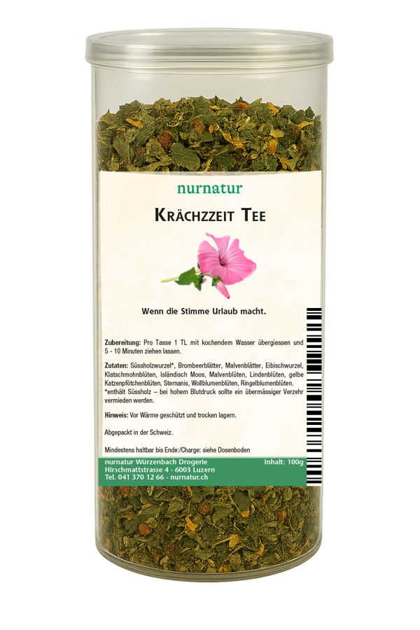Süssholzwurzel*, Brombeerblätter, Malvenblätter, Eibischwurzel, Klatschmohnblüten, Isländisch Moos, Malvenblüten, Lindenblüten, gelbe Katzenpfötchenblüten, Sternanis, Wollblumenblüten, Ringelblumenblüten.